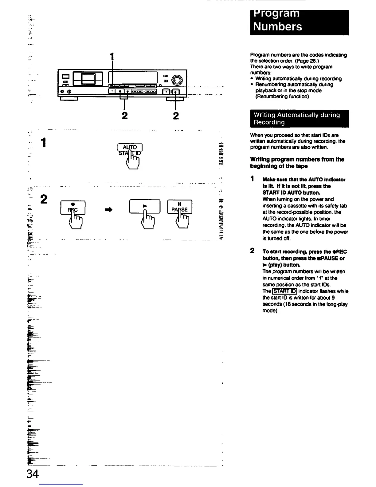 Sony DTC-690 - Program Numbers: Automatic Writing; Program Number Purpose