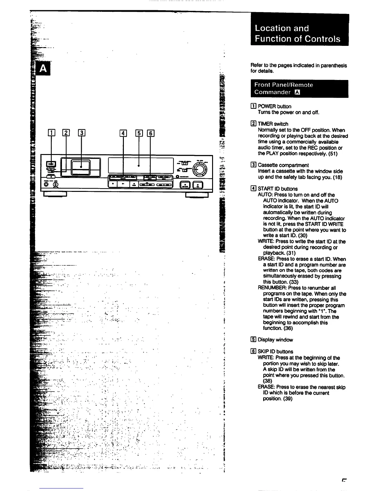 Sony DTC-690 - Location and Function of Controls; Front Panel Controls (1-6)