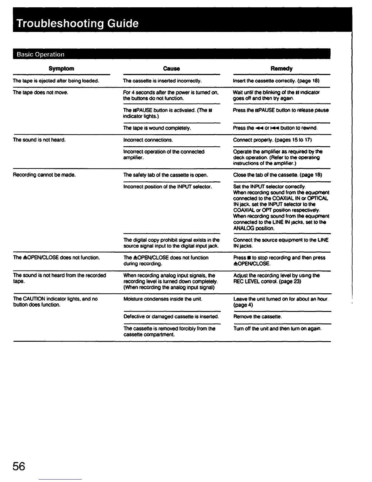 Sony DTC-690 - Troubleshooting: Basic Operation Issues; Tape Handling and Sound Issues