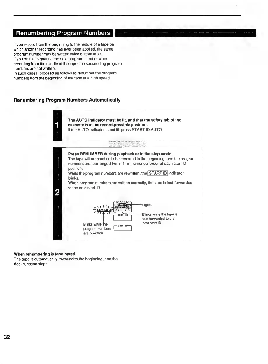 Sony DTC-700 - Renumbering Program Numbers; Automatic Program Number Renumbering
