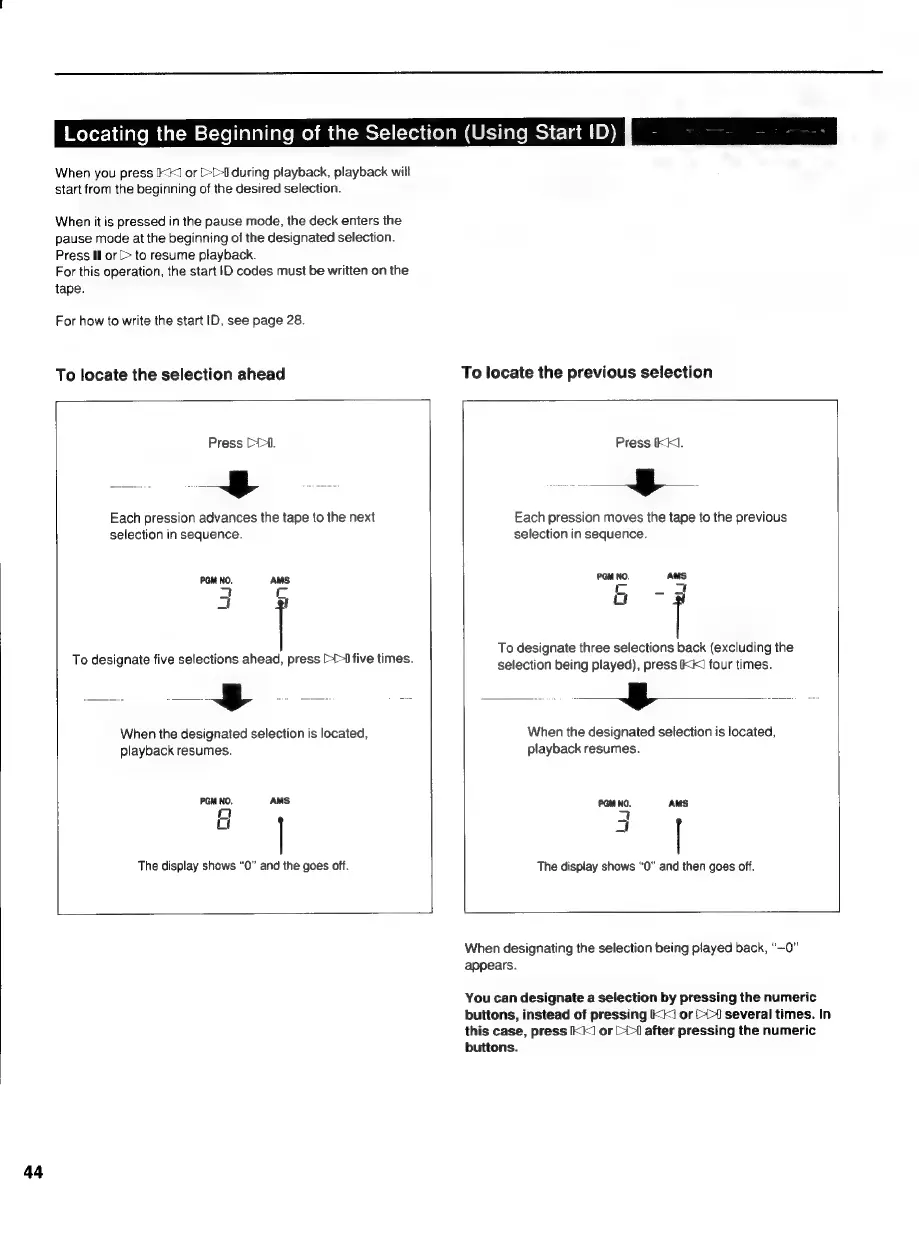 Sony DTC-700 - Locating Selections with Start IDs; Start ID Search Functions