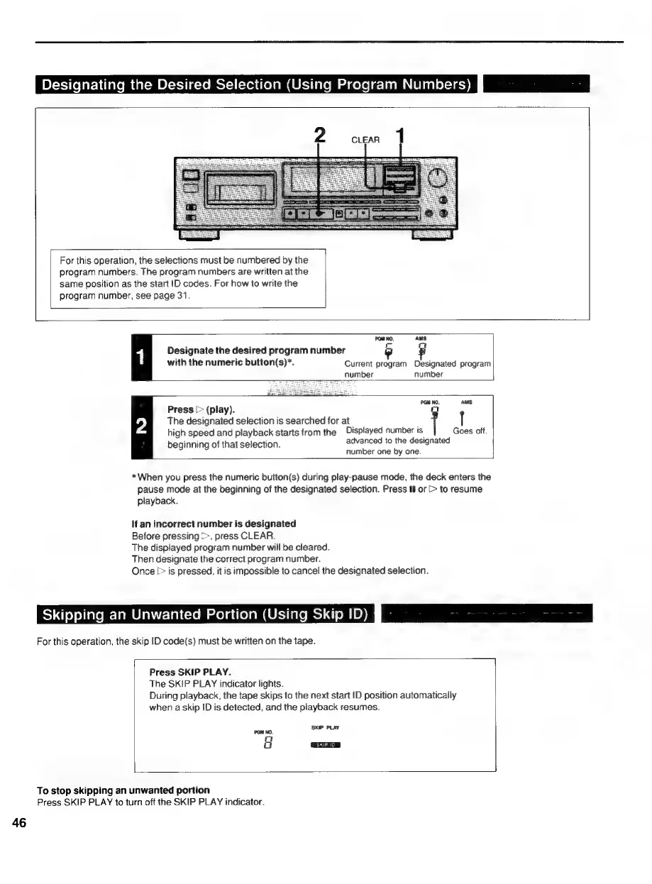 Sony DTC-700 - Selection Management Functions; Designating Selections by Program Number; Skipping Unwanted Portions with Skip ID