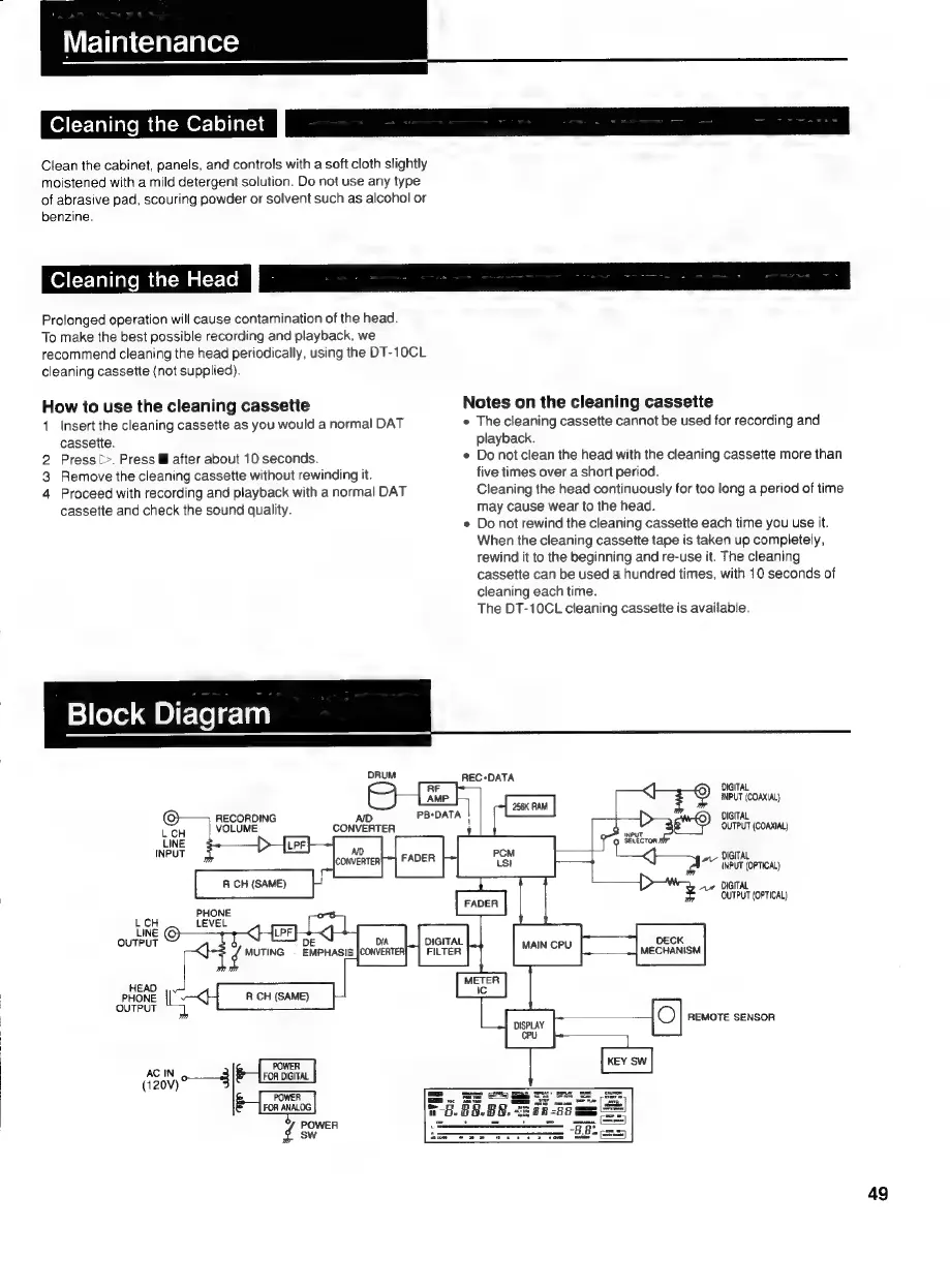 Sony DTC-700 - Maintenance and System Diagram; Cleaning the Unit and Head