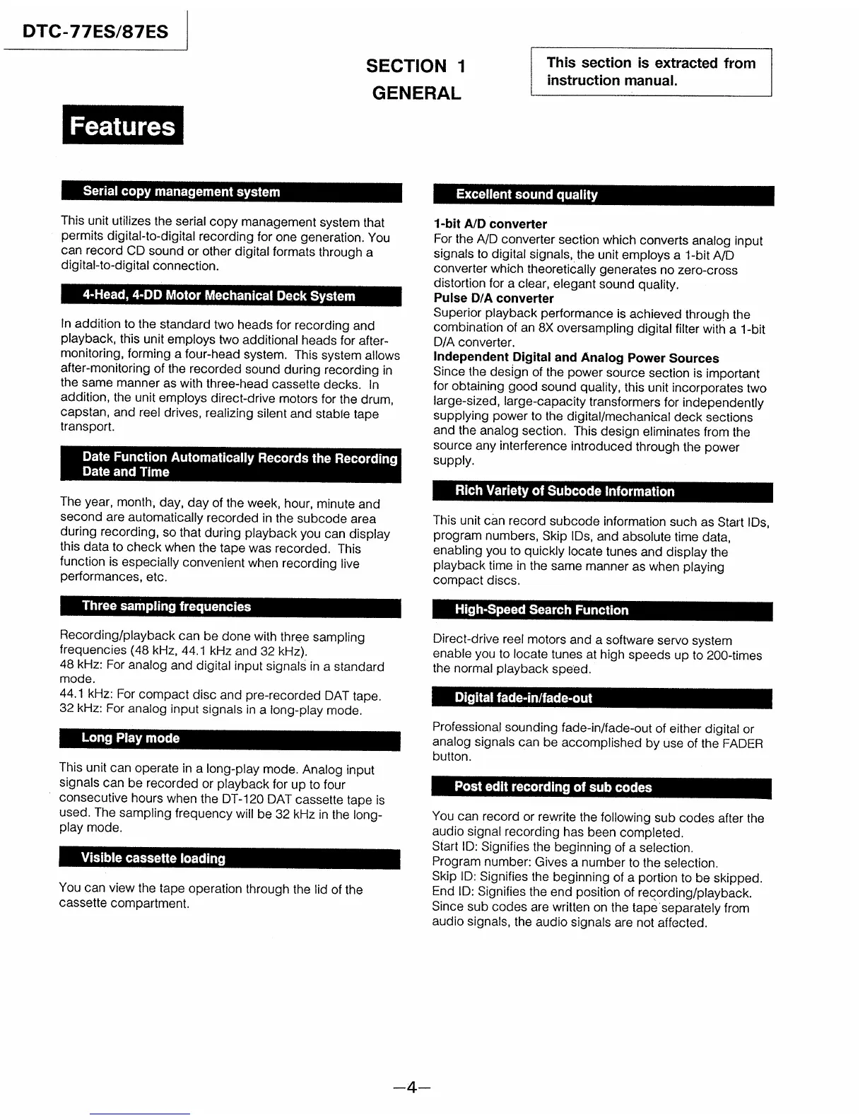 Sony DTC-77ES - General Information; Product Features