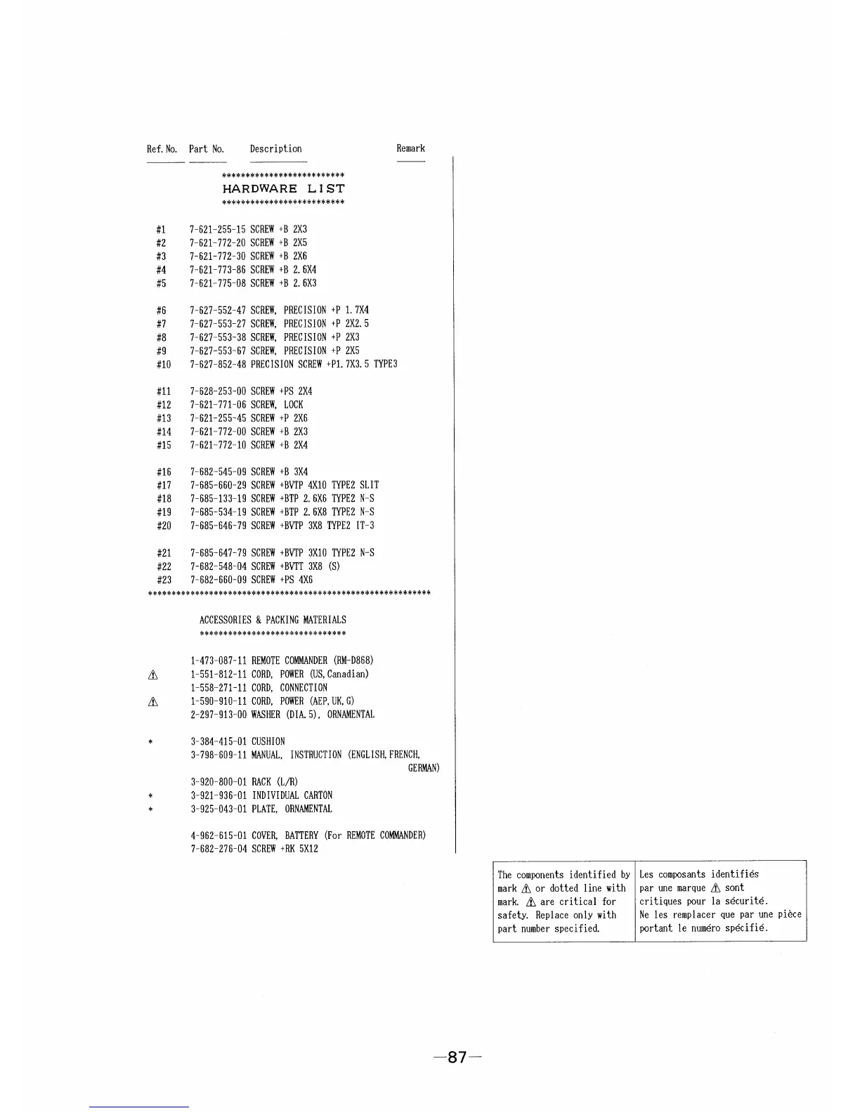 Sony DTC-A8 - Hardware List; Accessories & Packing Materials