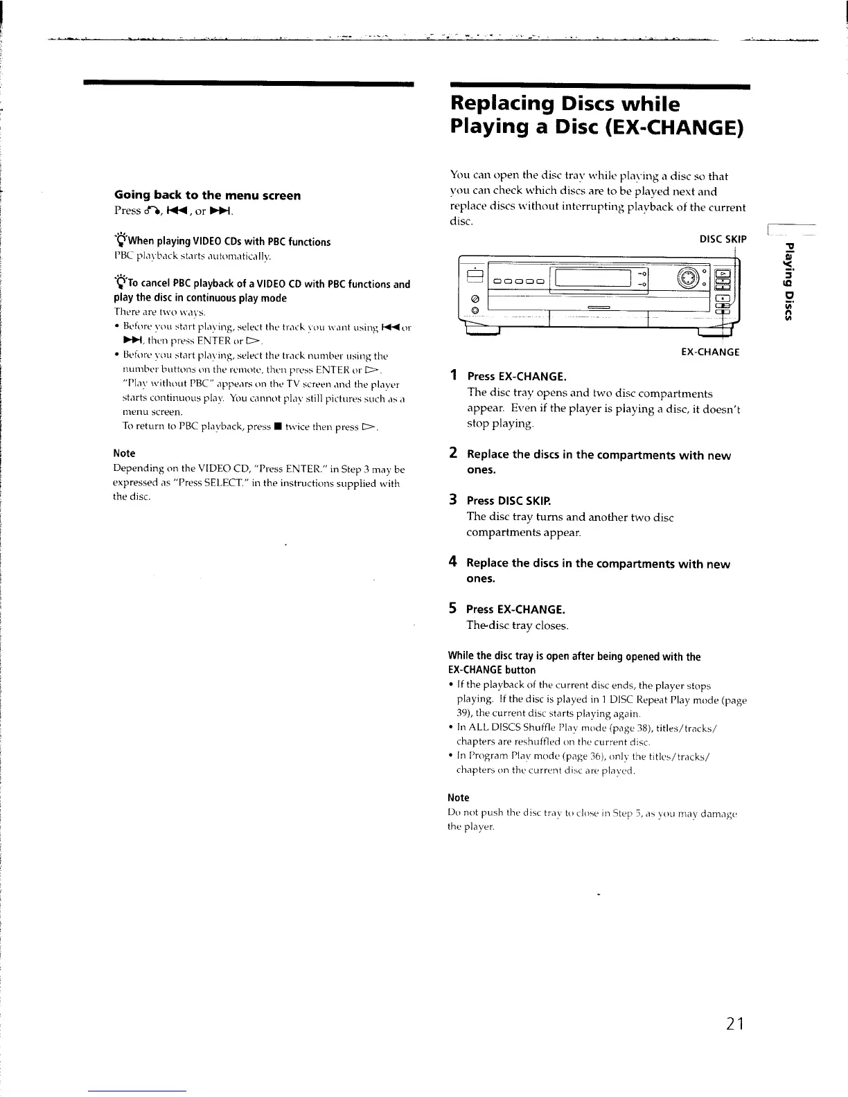 Sony DVP-C650D - Disc Replacement During Playback; EX-CHANGE Functionality Explained