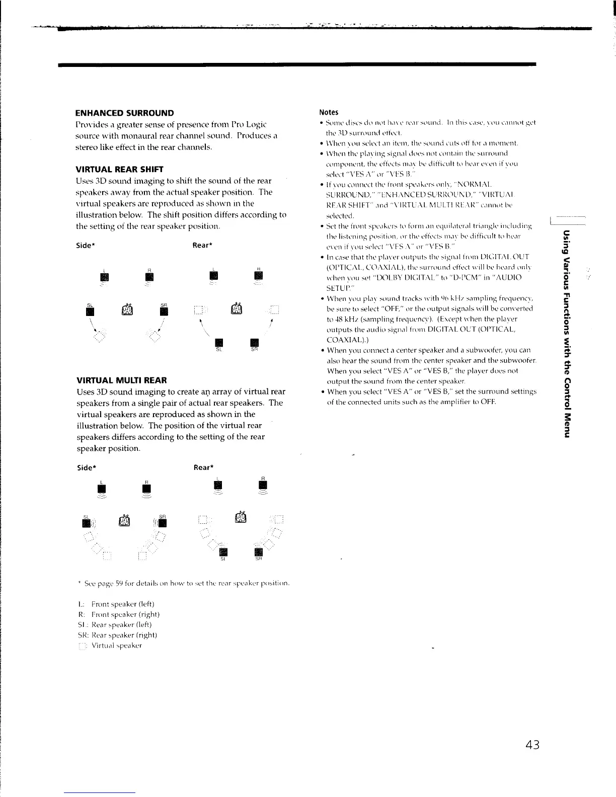 Sony DVP-C650D - Advanced Surround Sound Effects Explained; Virtual Rear Speaker Effect Modes