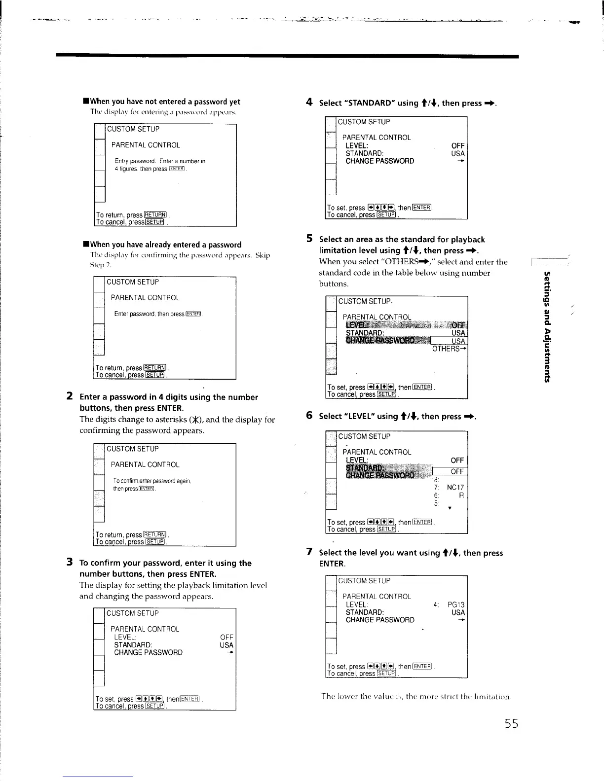 Sony DVP-C650D - Parental Control Setup and Limitation Levels; Setting Playback Restrictions