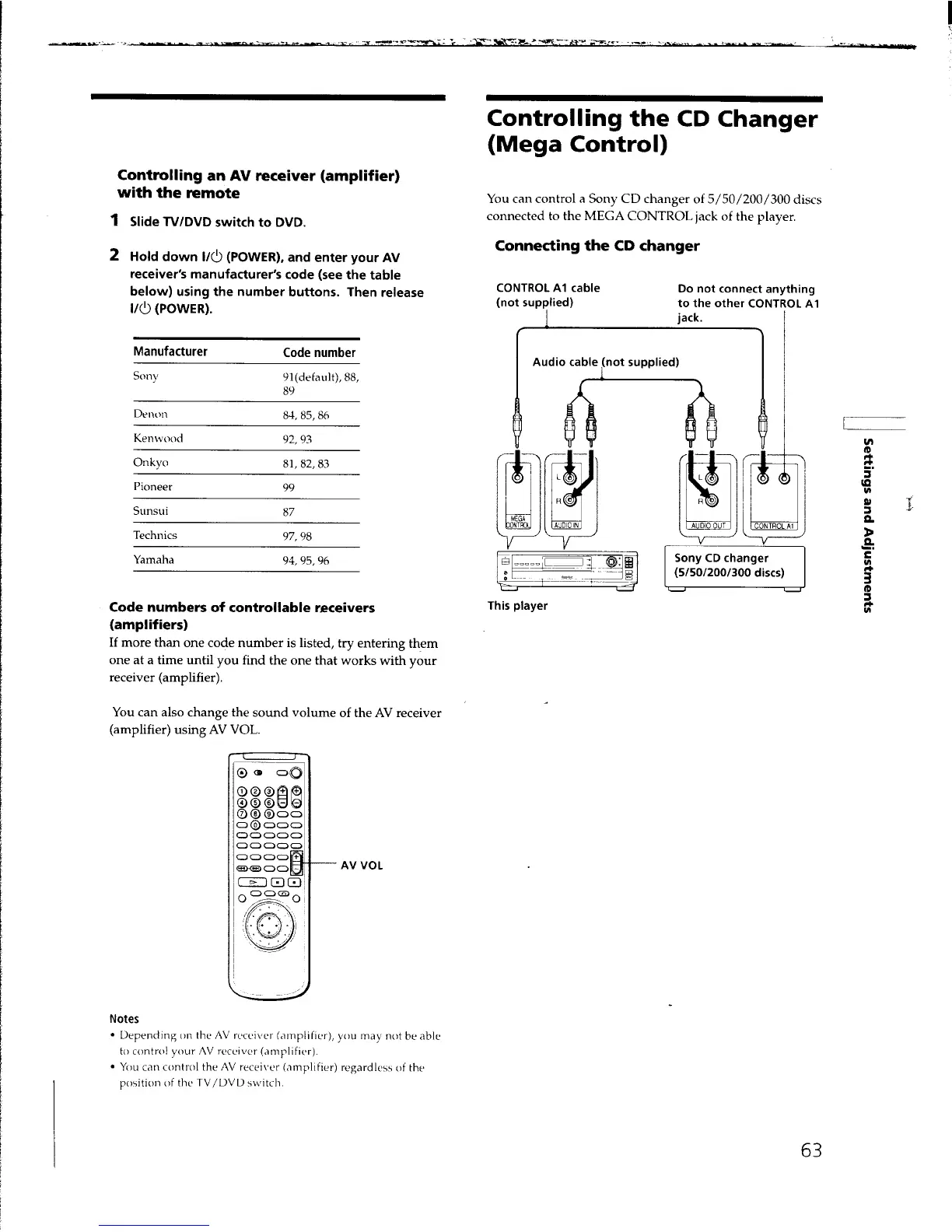 Sony DVP-C650D - AV Receiver and CD Changer Control; AV Receiver Control Setup with Remote; CD Changer Connection and Integration