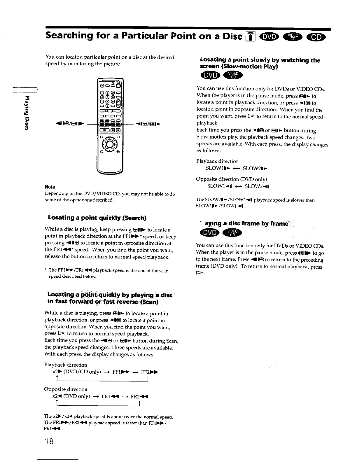 While a disc is playing, keep pressing @11_- to locate a