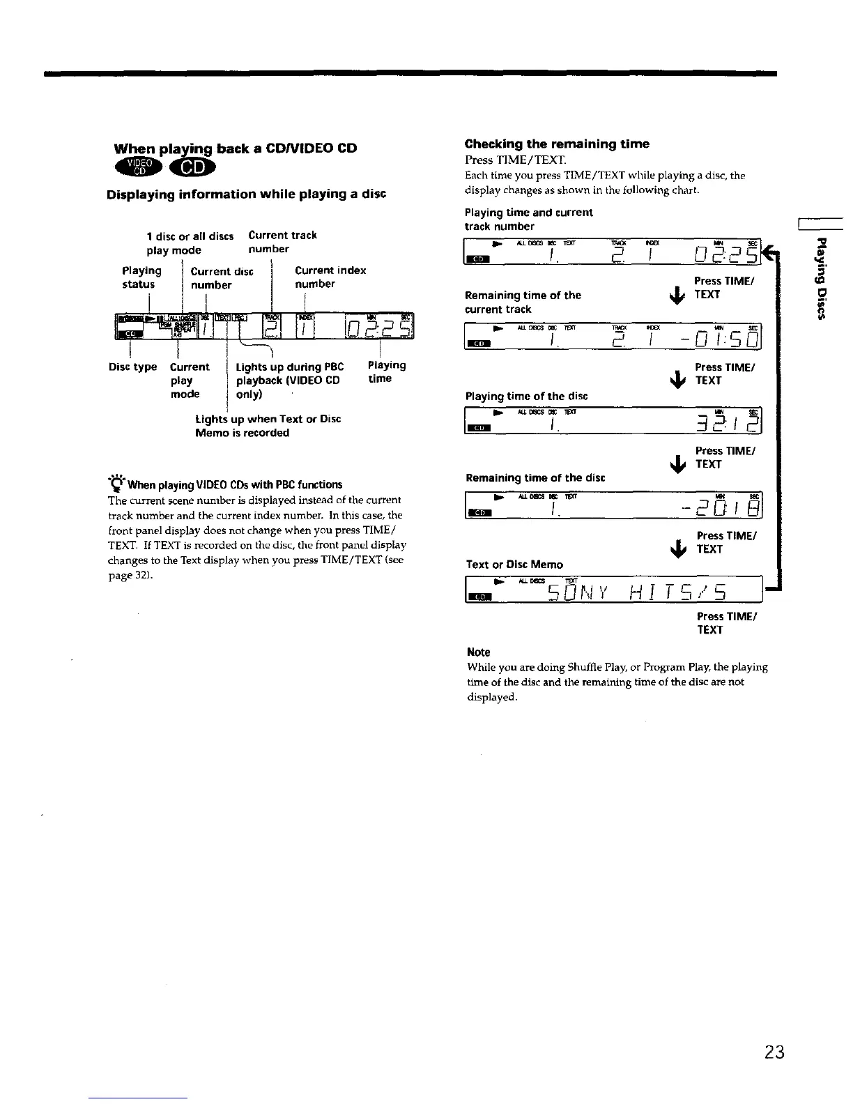 TEXT. If TEXT is recorded on the disc, the front panel display