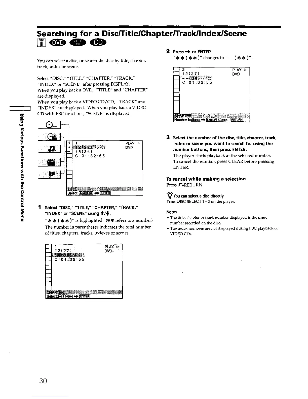 1 Select "DISC," "TITLE," "CHAPTER," "TRACK,"
