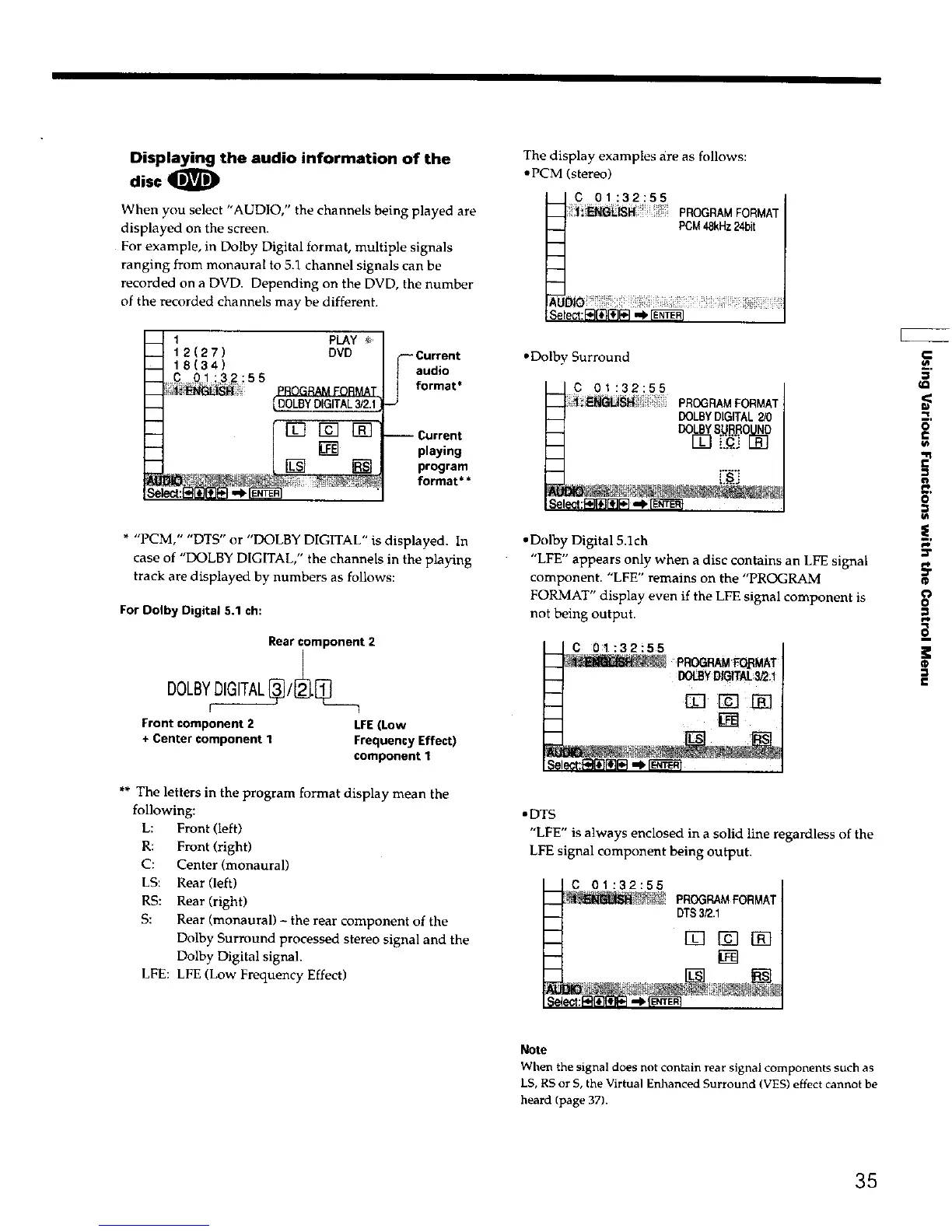 * "PCM," "DTS" or "DOLBY DIGITAL" is displayed. In