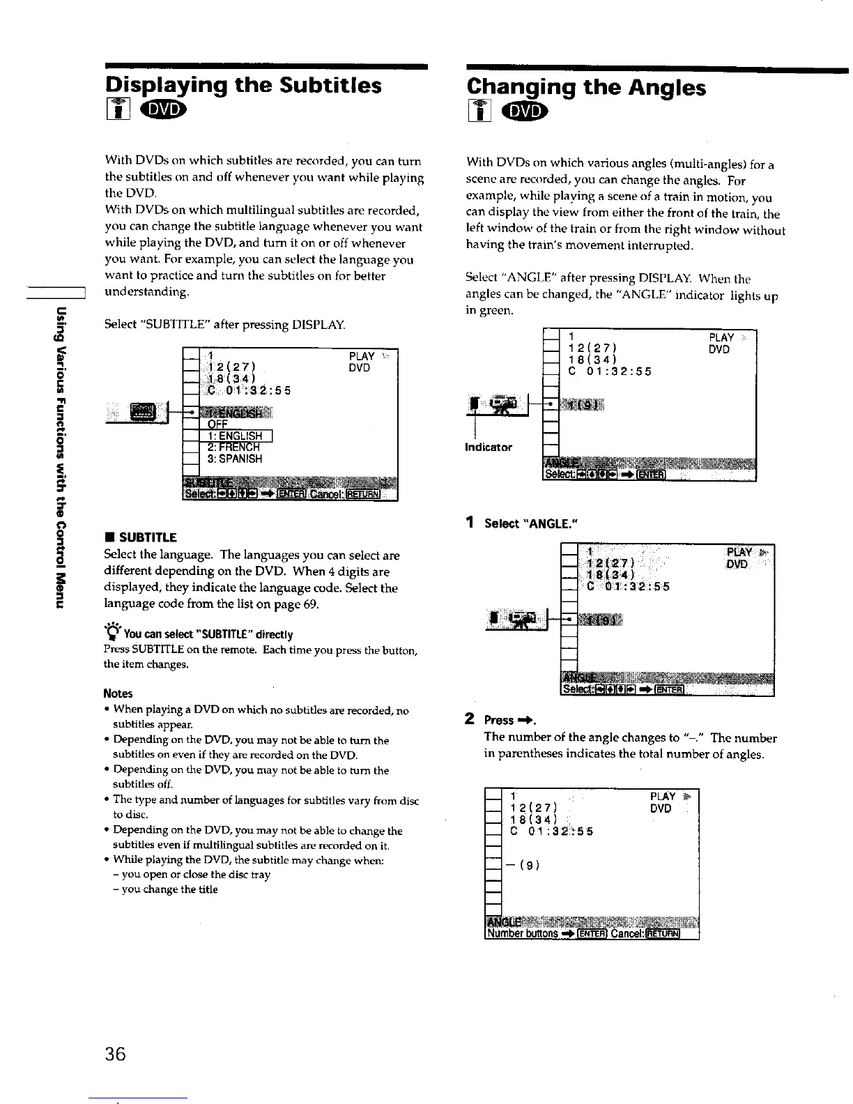 angles can be changed, the "ANGLE" indicator lights up