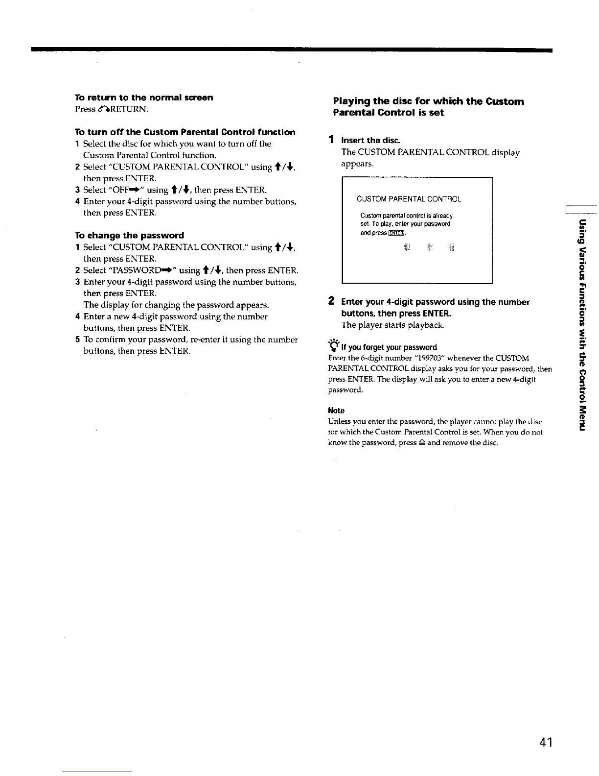 1 Select "CUSTOM PARENTAL CONTROL" using '1"/,!,,