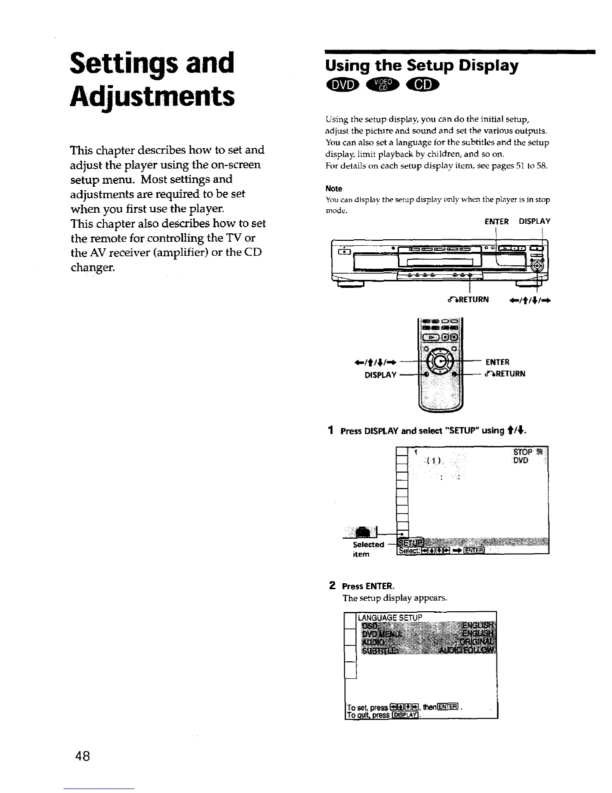 1 Press DISPLAY and select "SETUP" using _'/41,.