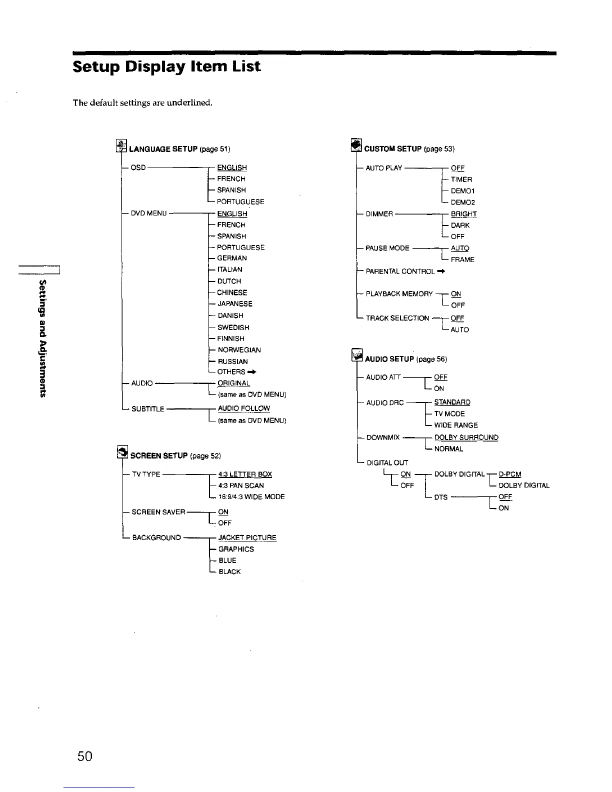 Sony DVP-C660 - Setup Display Item List