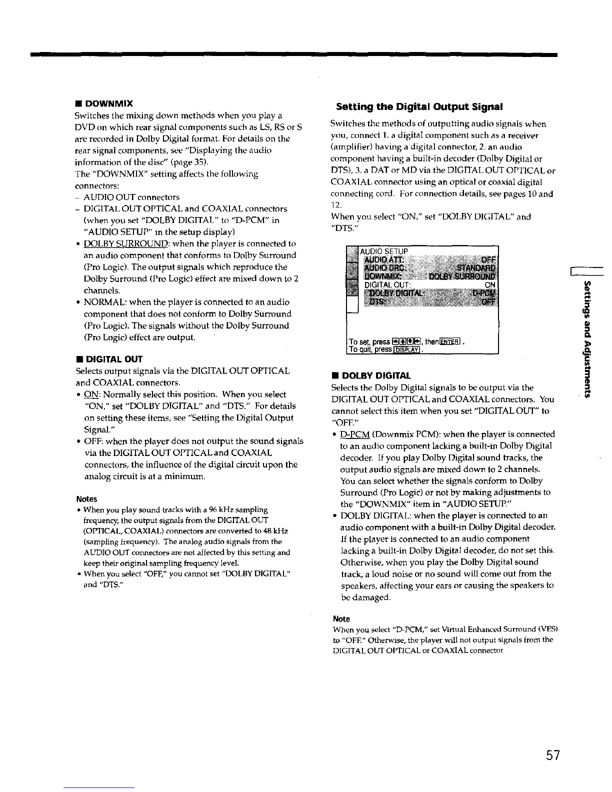 "ON," set "DOLBY DIGITAL" and "DTS." For details