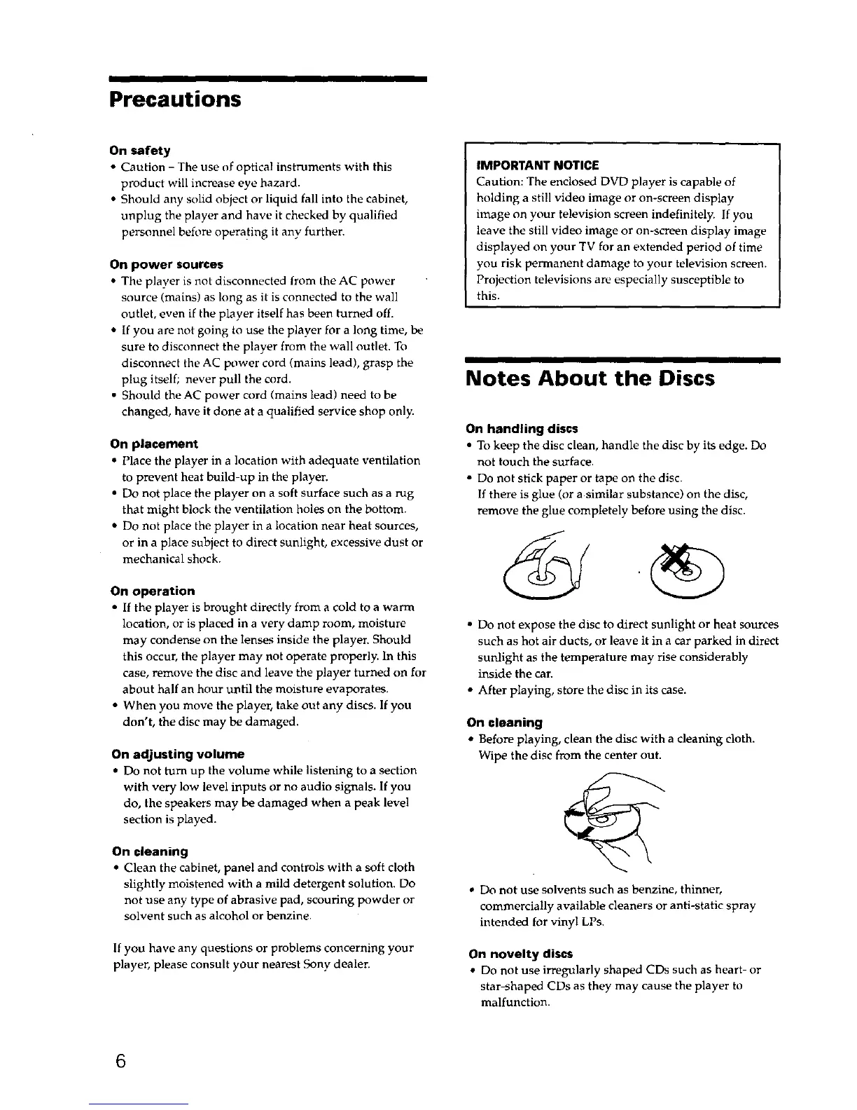 • Do not stick paper or tape on the disc.