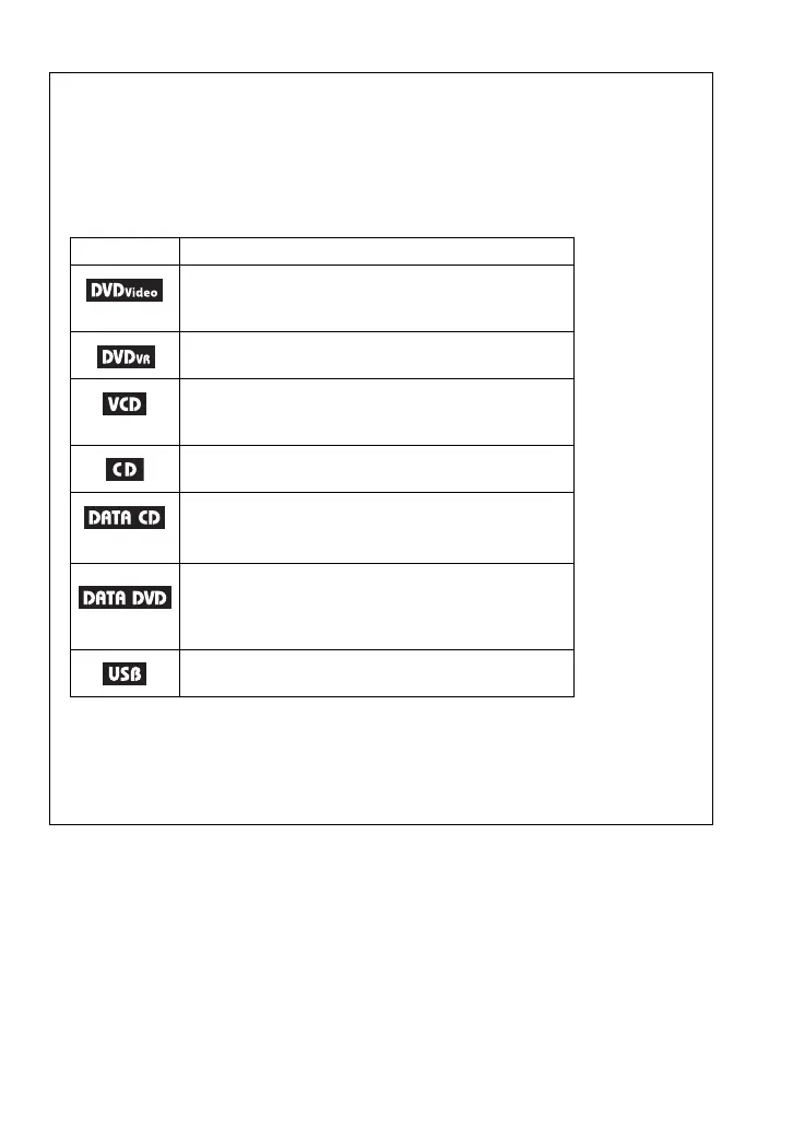 (+VR mode) and DVD-RWs/DVD-Rs (VR mode, video mode).