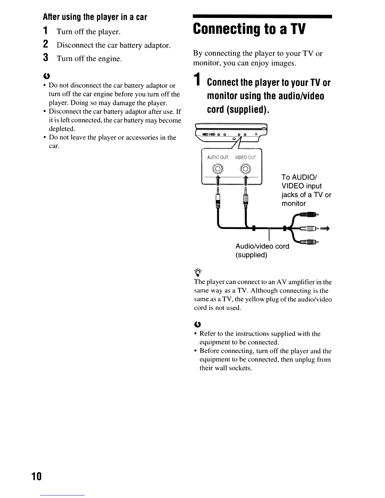 • Disconnect the car battery adaptor after use. If