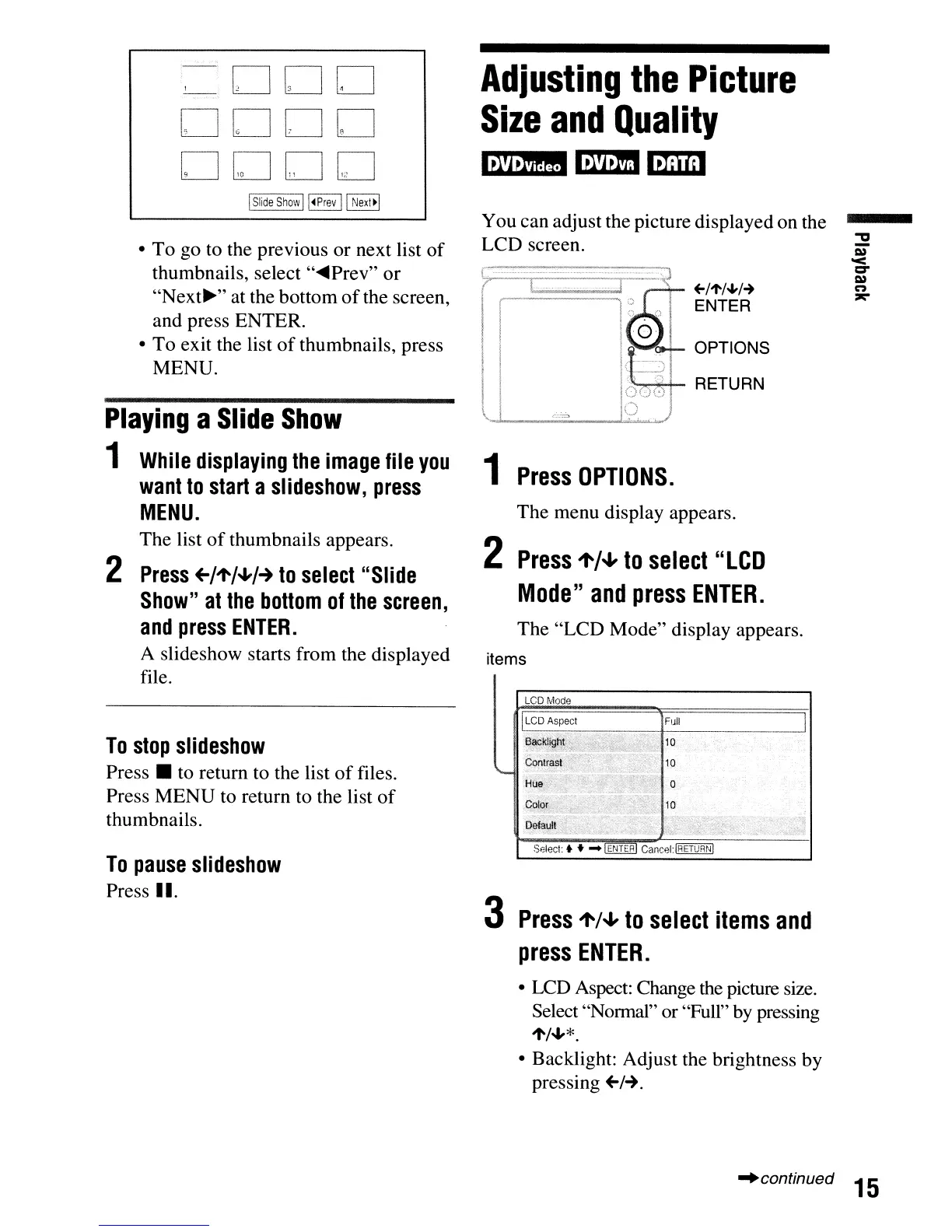 • LCD Aspect: Change the picture size.