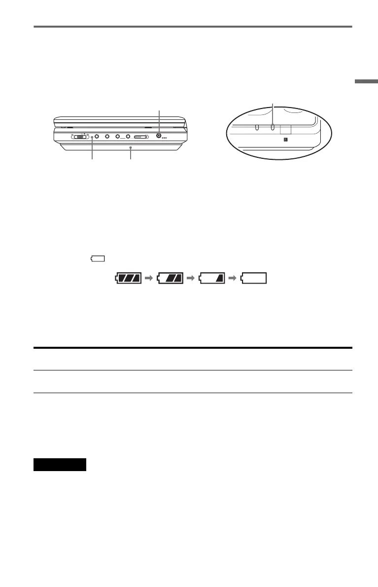 Lorsque vous arrêtez le lecteur, un indicateur de batterie est affiché sur l’écran. Rechargez la