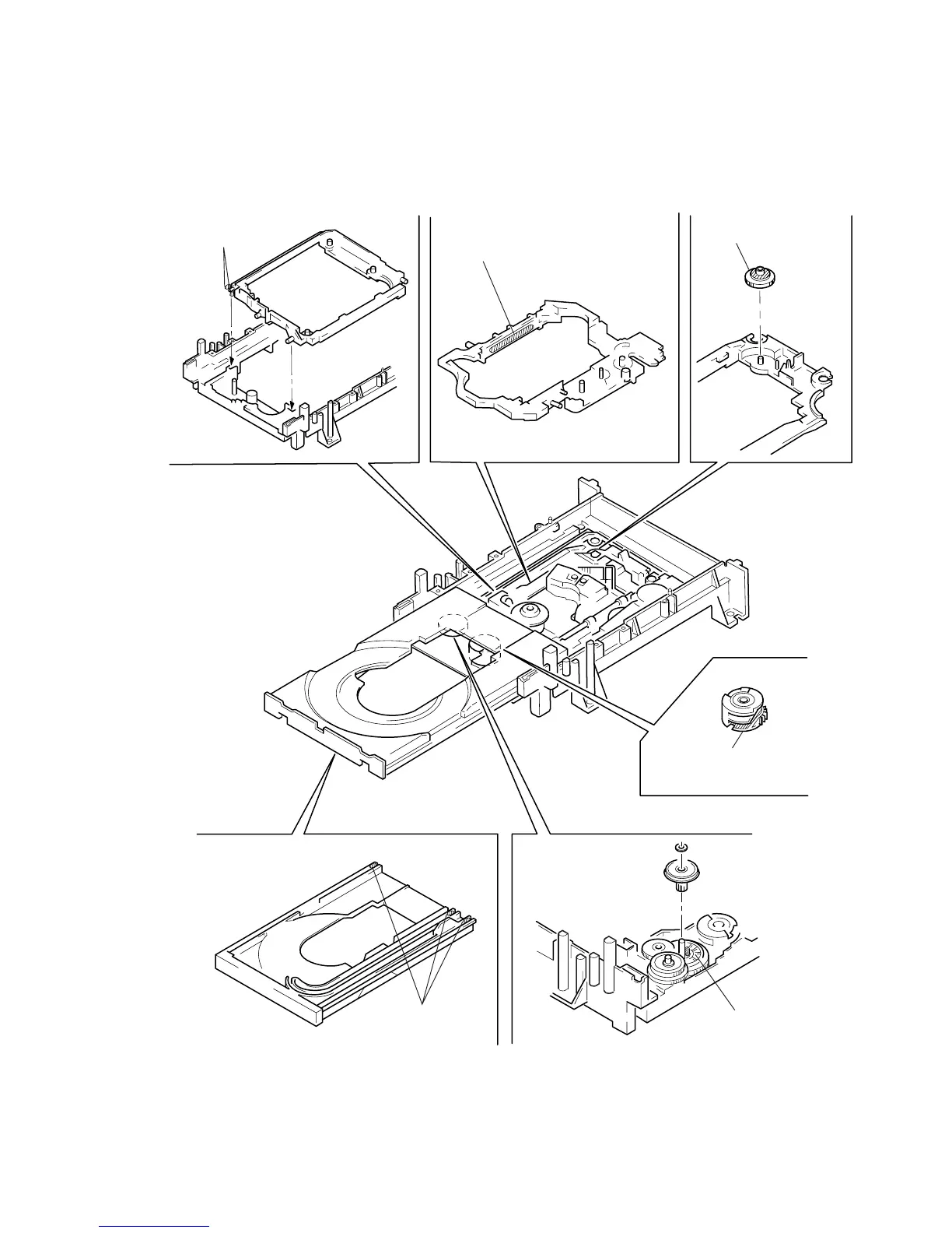Note 2: In applying grease, take care not to allow grease to stick to other parts (particularly, rubber belt, spindle motor, and optical pick-up).