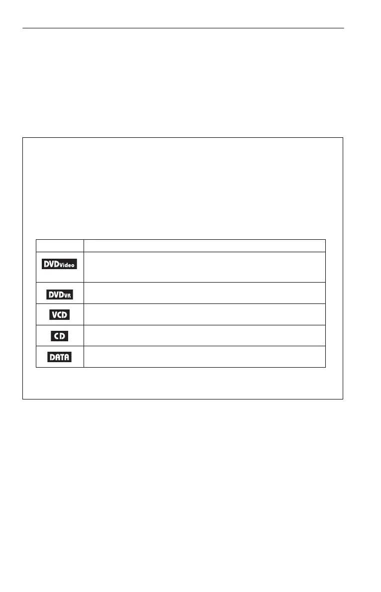 DLs (+VR mode) and DVD-RWs/DVD-Rs/DVD-R DLs (VR mode, video mode).