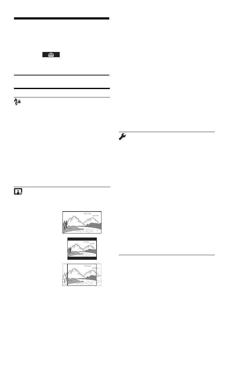 TV TYPE: Selects the aspect ratio of the