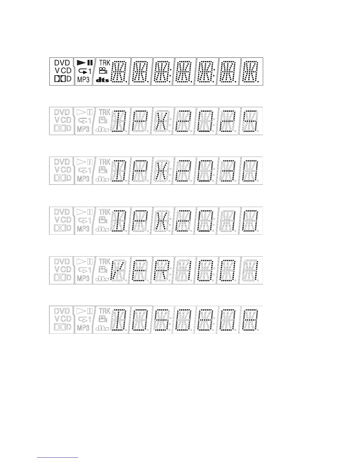 When the Self Check mode becomes active at the AC Power ON or by key input, the test display of the following steps (1) to (4) is repeated.