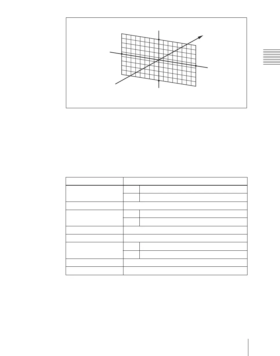 Values for x-, y- and z-axes (16:9 mode)