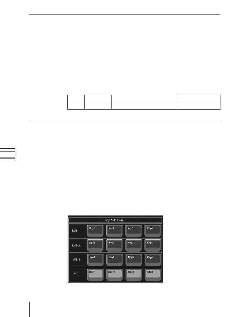 In the Switcher >Key/Wipe/FM/CCR menu, press [Key Auto Drop].