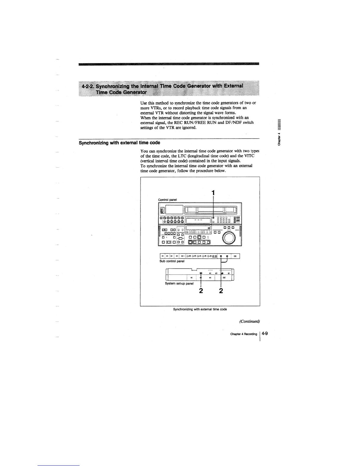 Sony DVW-A500 - 4-2-2. Synchronizing the Internal Time Code Generator with External Time Code Generator