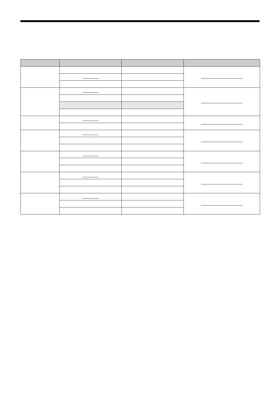 Underlined items are the factory setting.
