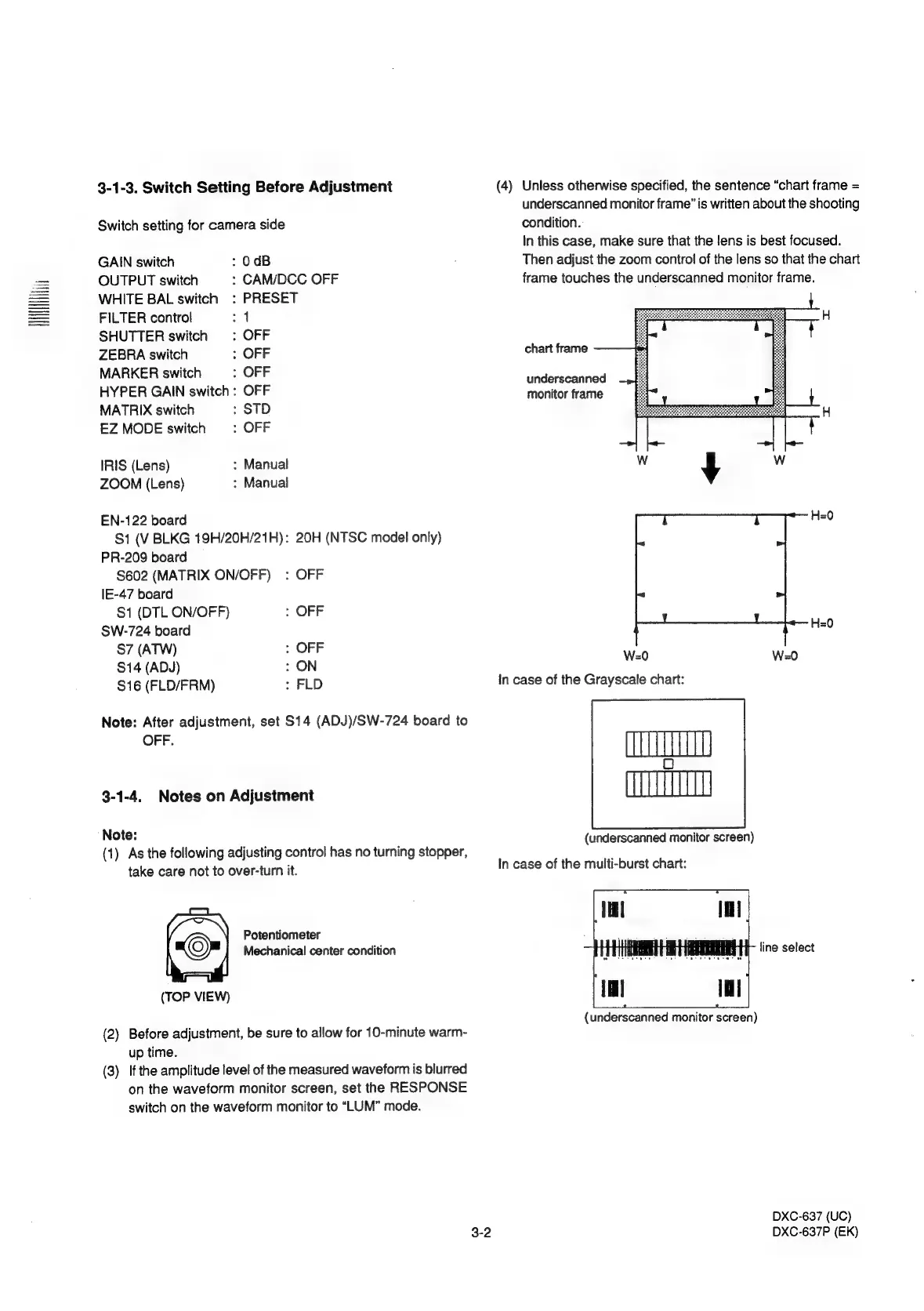 Sony DXC-637 - Switch Settings Before Alignment; Notes on Alignment Procedures