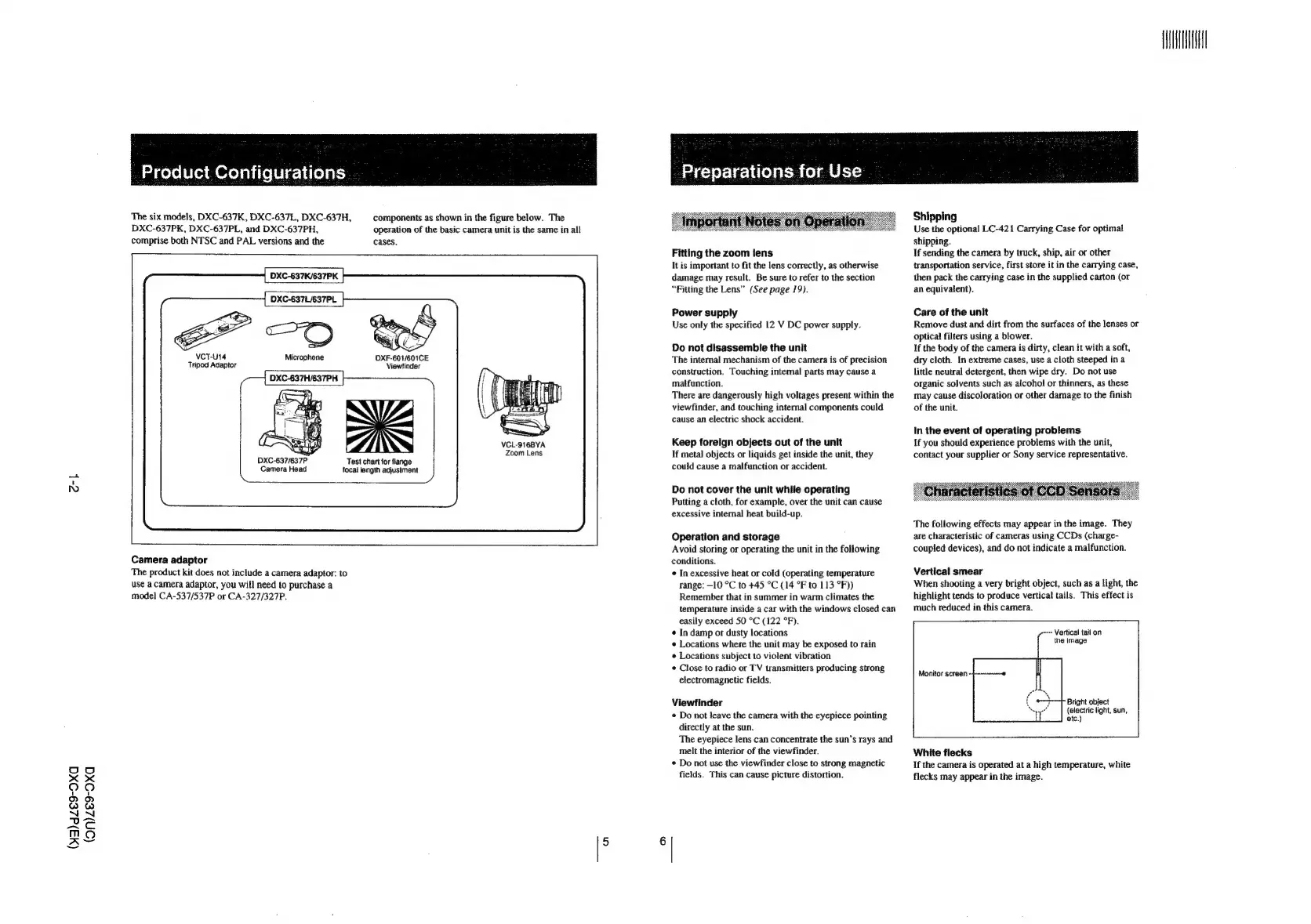 Sony DXC-637 - Product Configurations and Preparations; Product Configurations; Preparations for Use