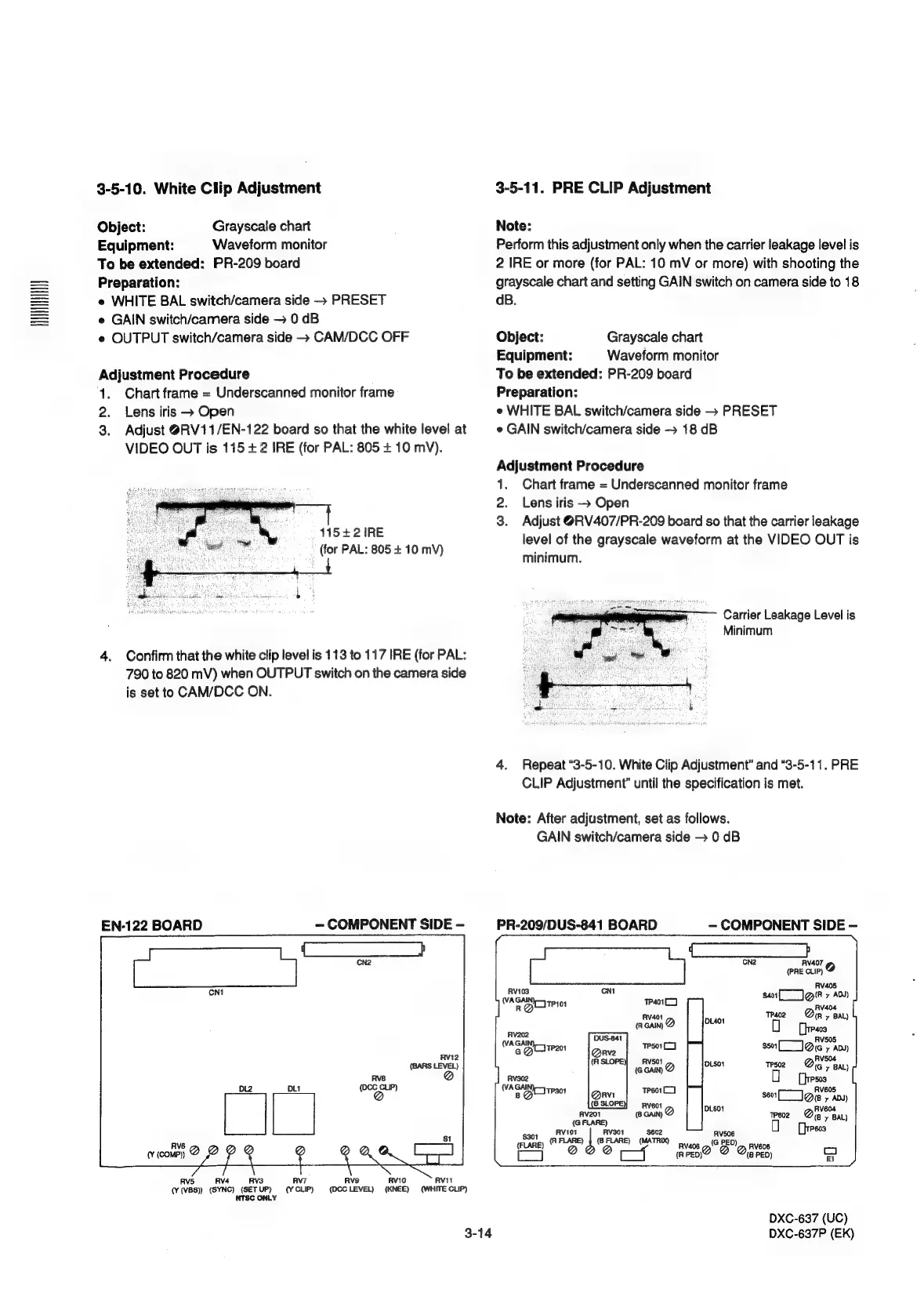 Sony DXC-637 - White Clip Adjustment; PRE CLIP Adjustment