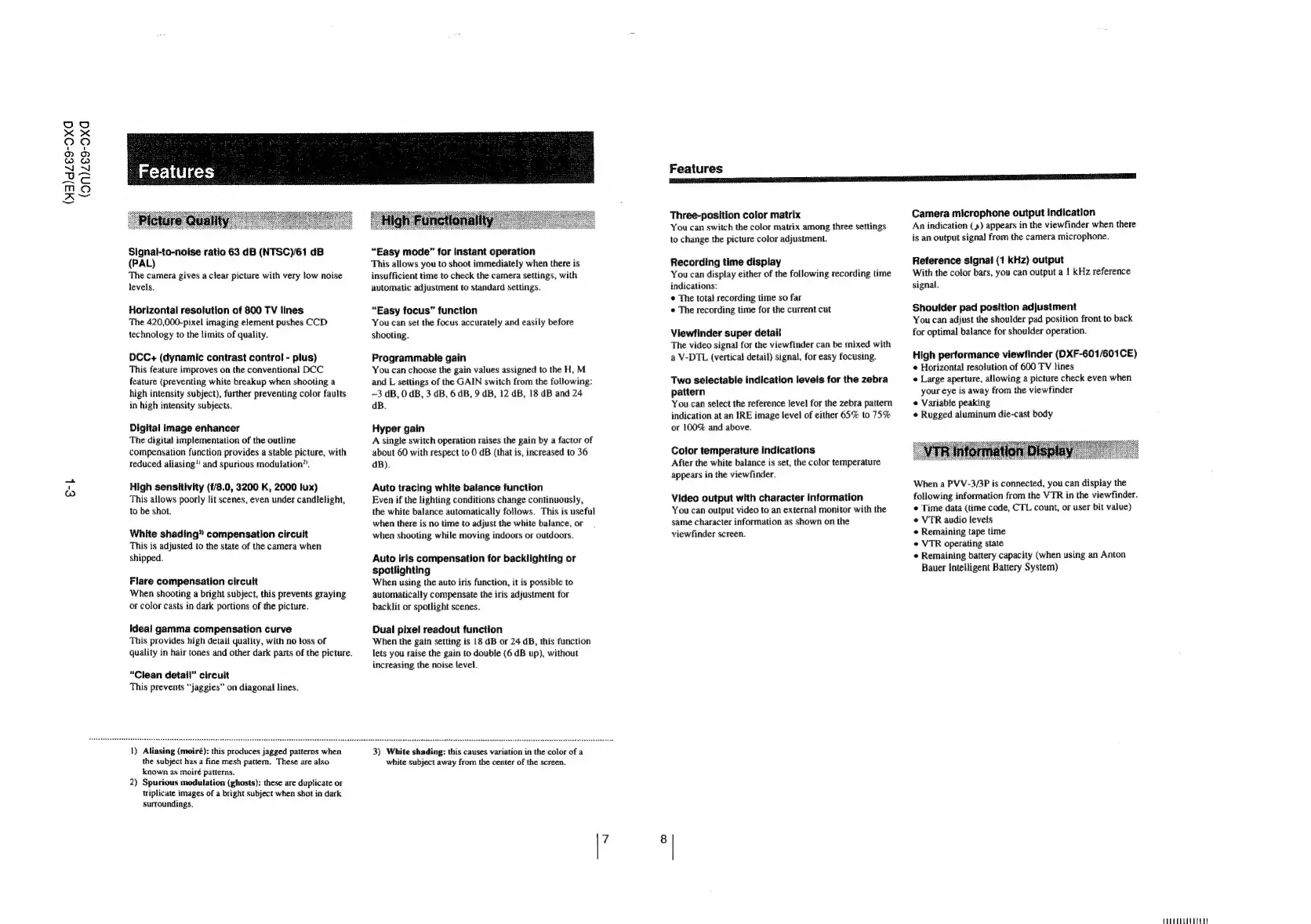 Sony DXC-637 - Camera Features and Functionality; Picture Quality Features; High Functionality Features