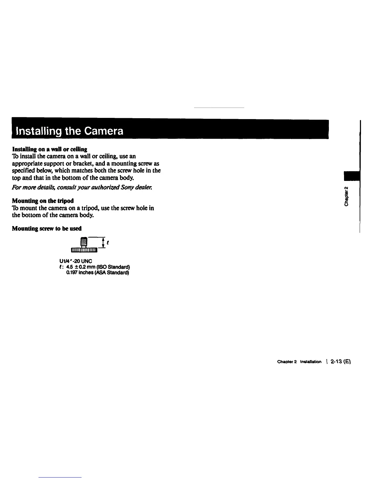 Sony DXC-930 - Installing the Camera; Installing on a Wall or Ceiling; Mounting on the Tripod