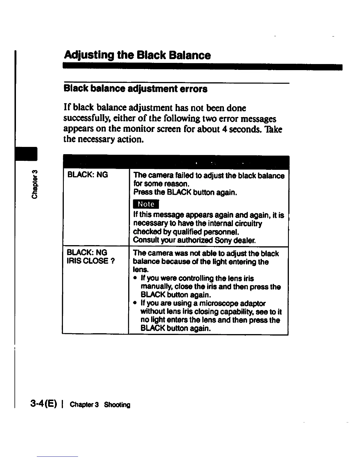 Sony DXC-930 - Black Balance Adjustment Errors