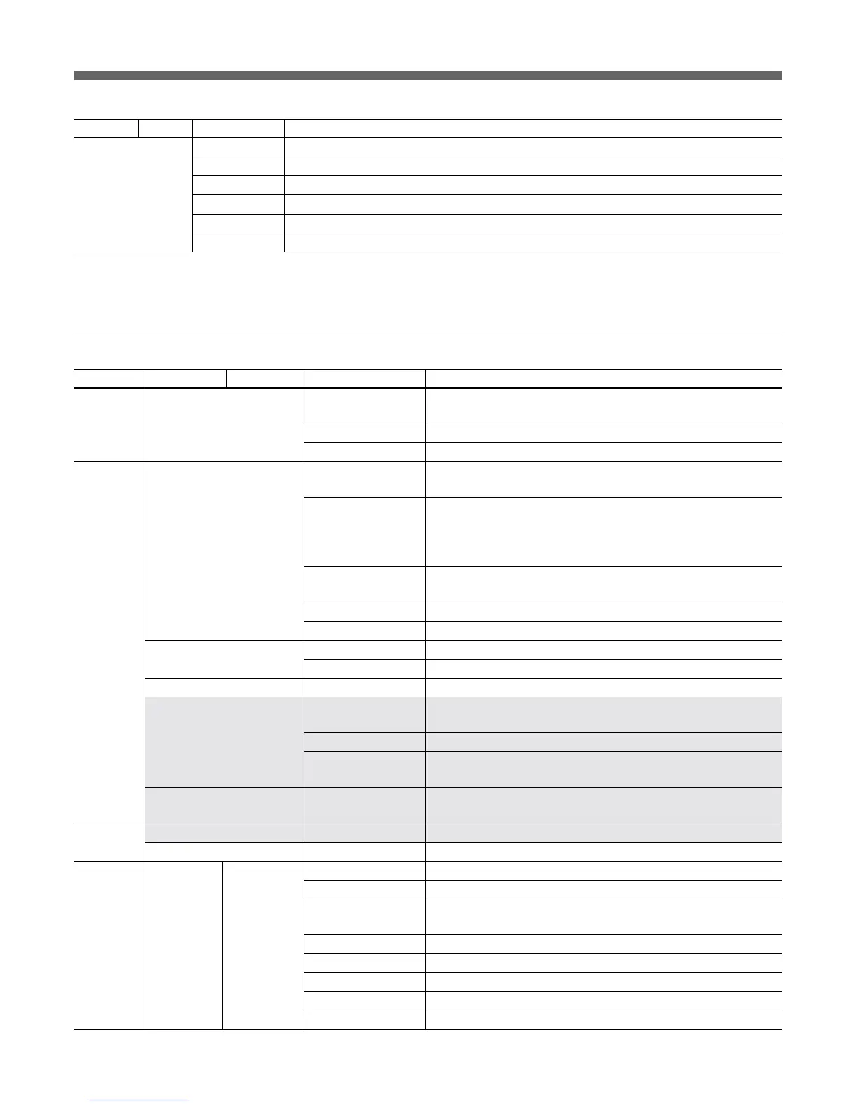 Menu 2ndary menu Submenu Control item Function