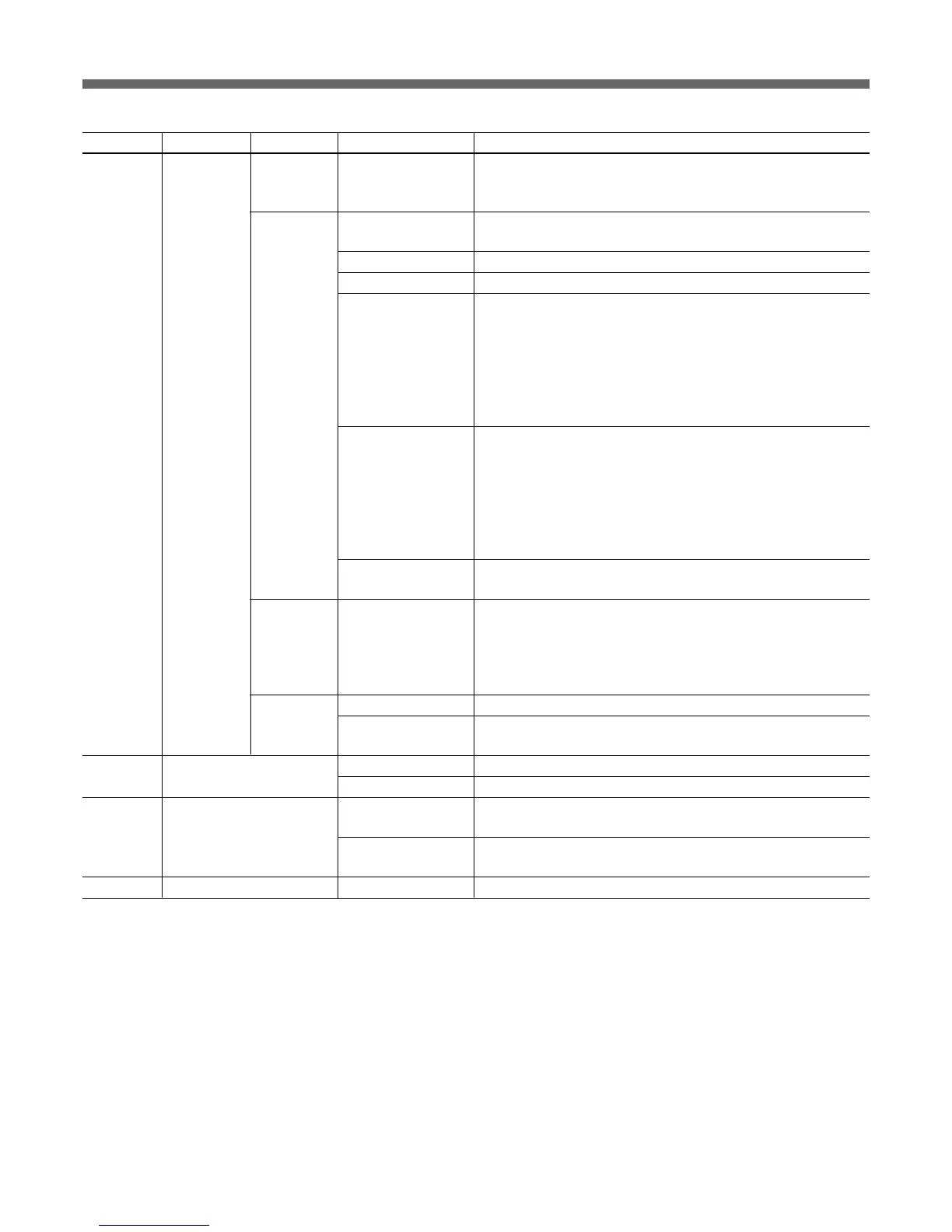 Menu 2ndary menu Submenu Control item Function