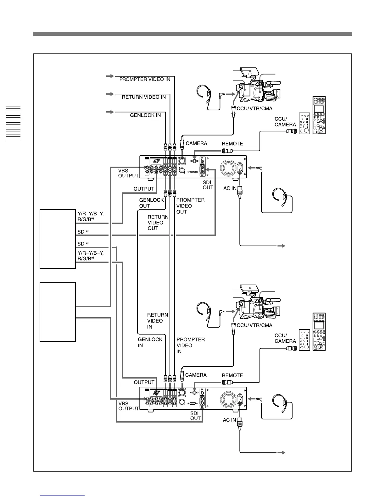 a) Switching of the SDI, Y/R-Y/B-Y, R/G/B signals can be done