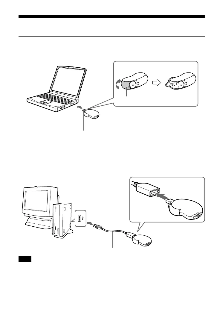 Some PCs may not accept direct connection of the Network Walkman’s USB A plug. In this