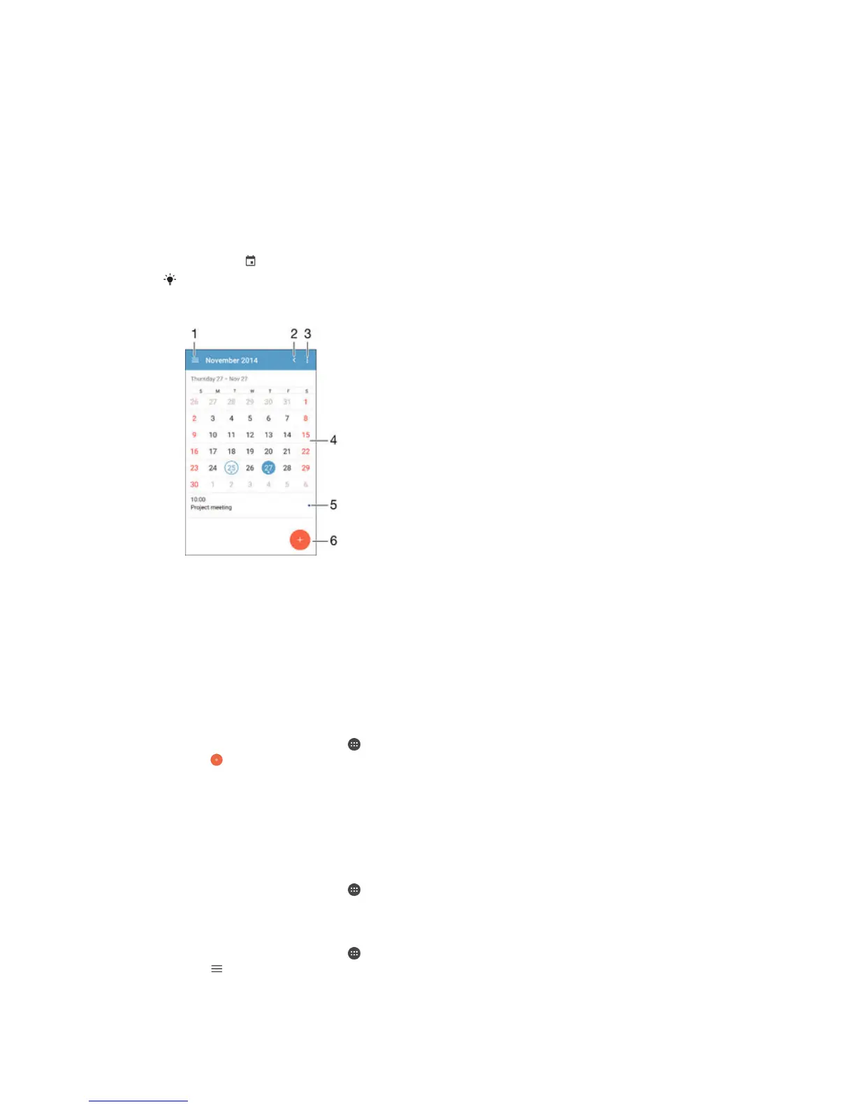 example, your Google™ account or Xperia™ with Facebook account, then calendar