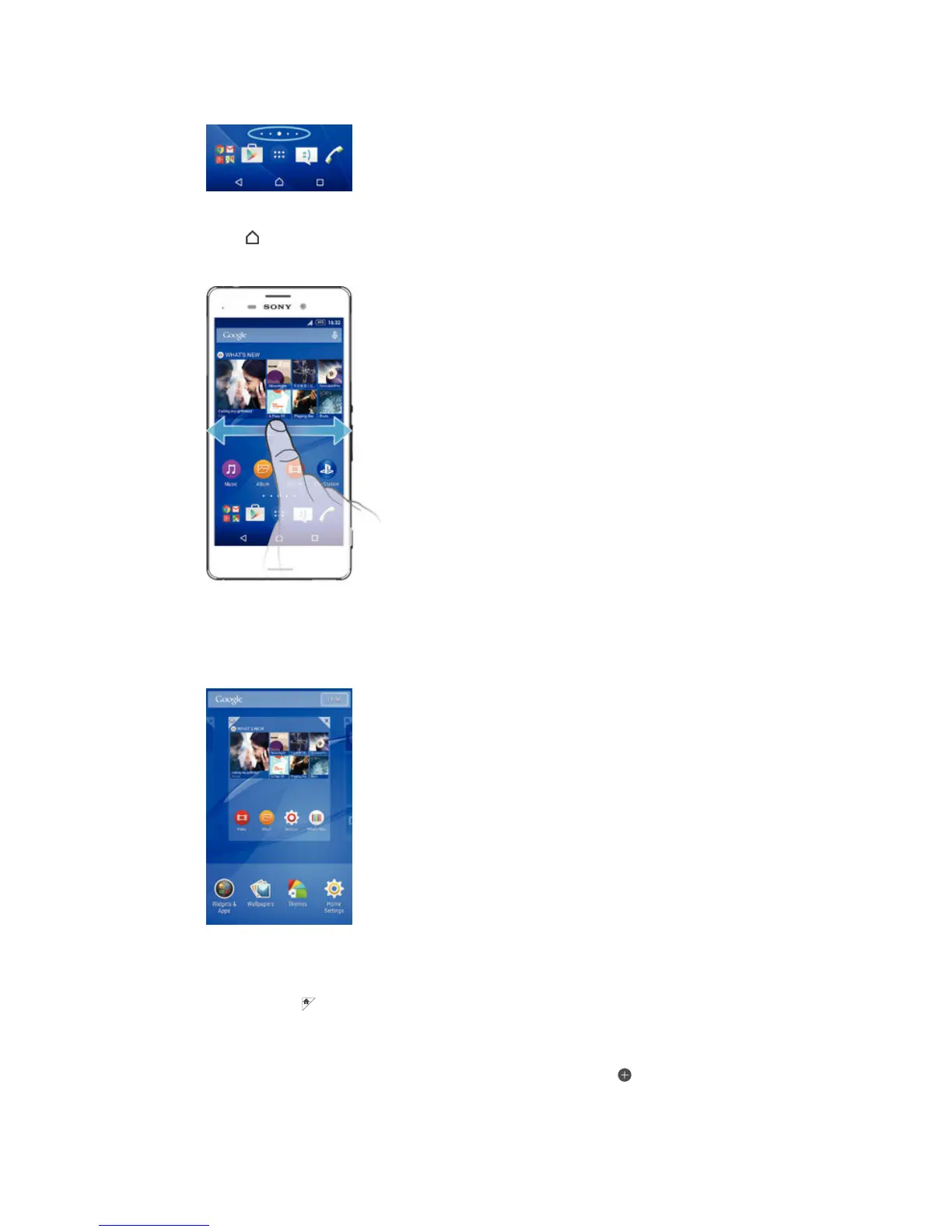 Touch and hold an empty area on your Homescreen until the device vibrates.