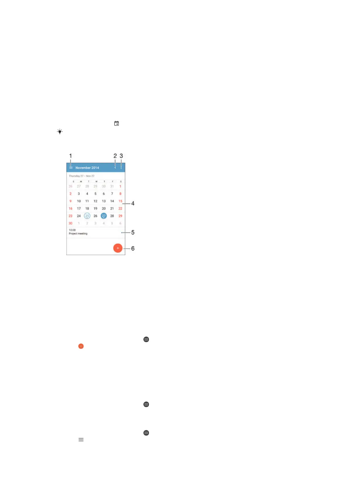 calendars, for example, your Google™ account or Xperia™ with Facebook account,