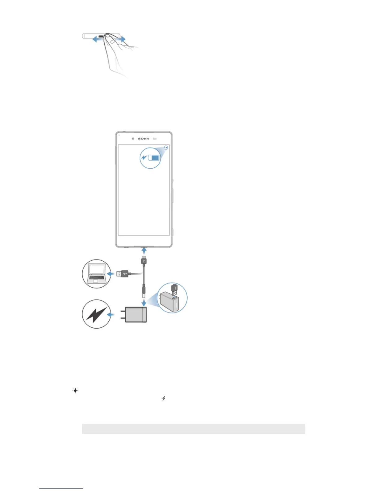 2 Plug one end of the USB cable into the charger (or into the USB port of a