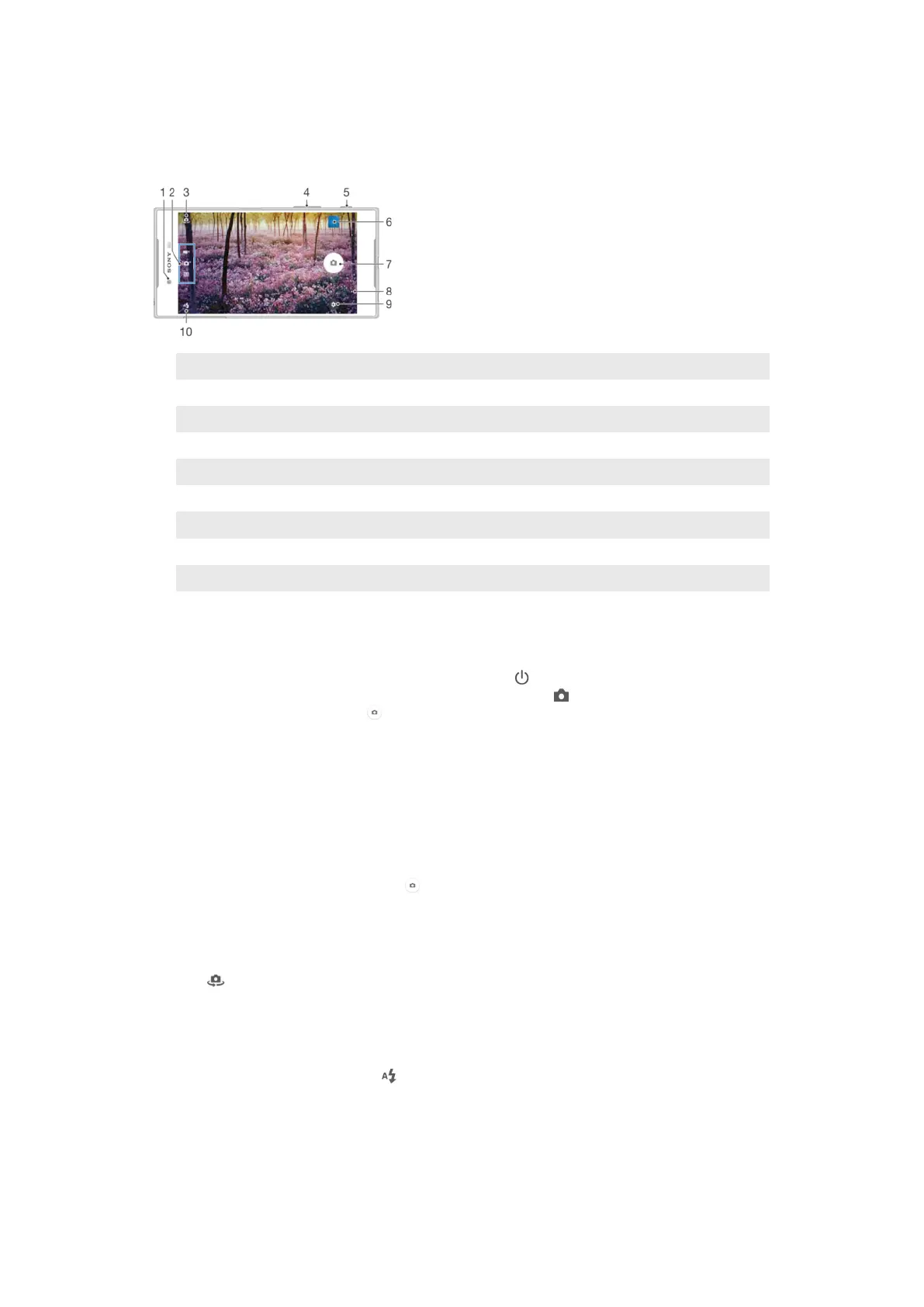5 Camera key – Activate the camera/Take photos/Record videos